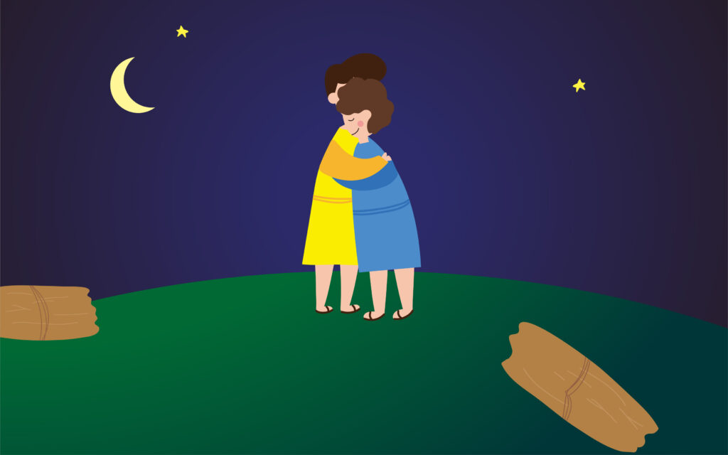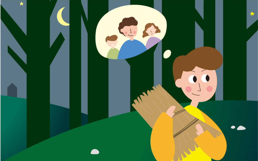 Certa noite os irmãos se encontraram no caminho e notaram que o outro carregava algo nas costas. Depois, de explicarem o motivo de carregar esses feixes sentiram o amor fraternal um pelo outro, ambos não conseguiram conter a emoção, se abraçaram e choraram.